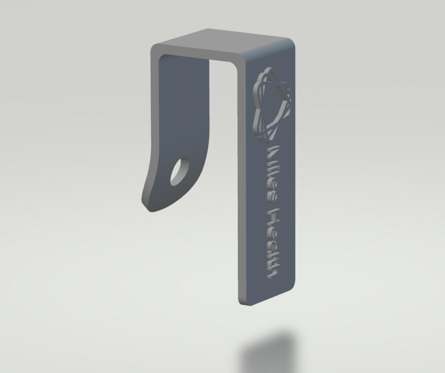 Custom designed and 3D printed clip to hang on gym locker doors to easily identify one's locker and promote branding.